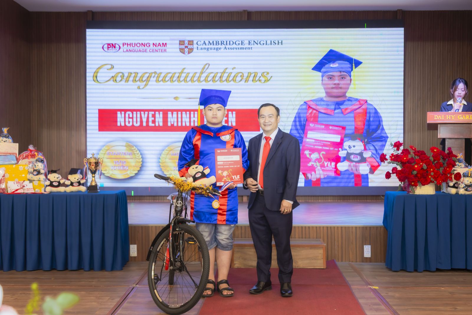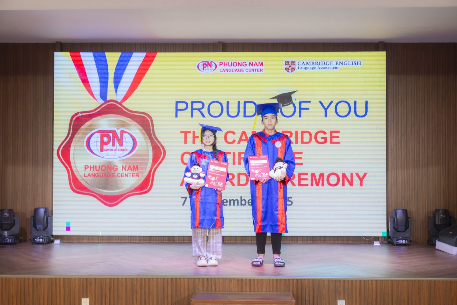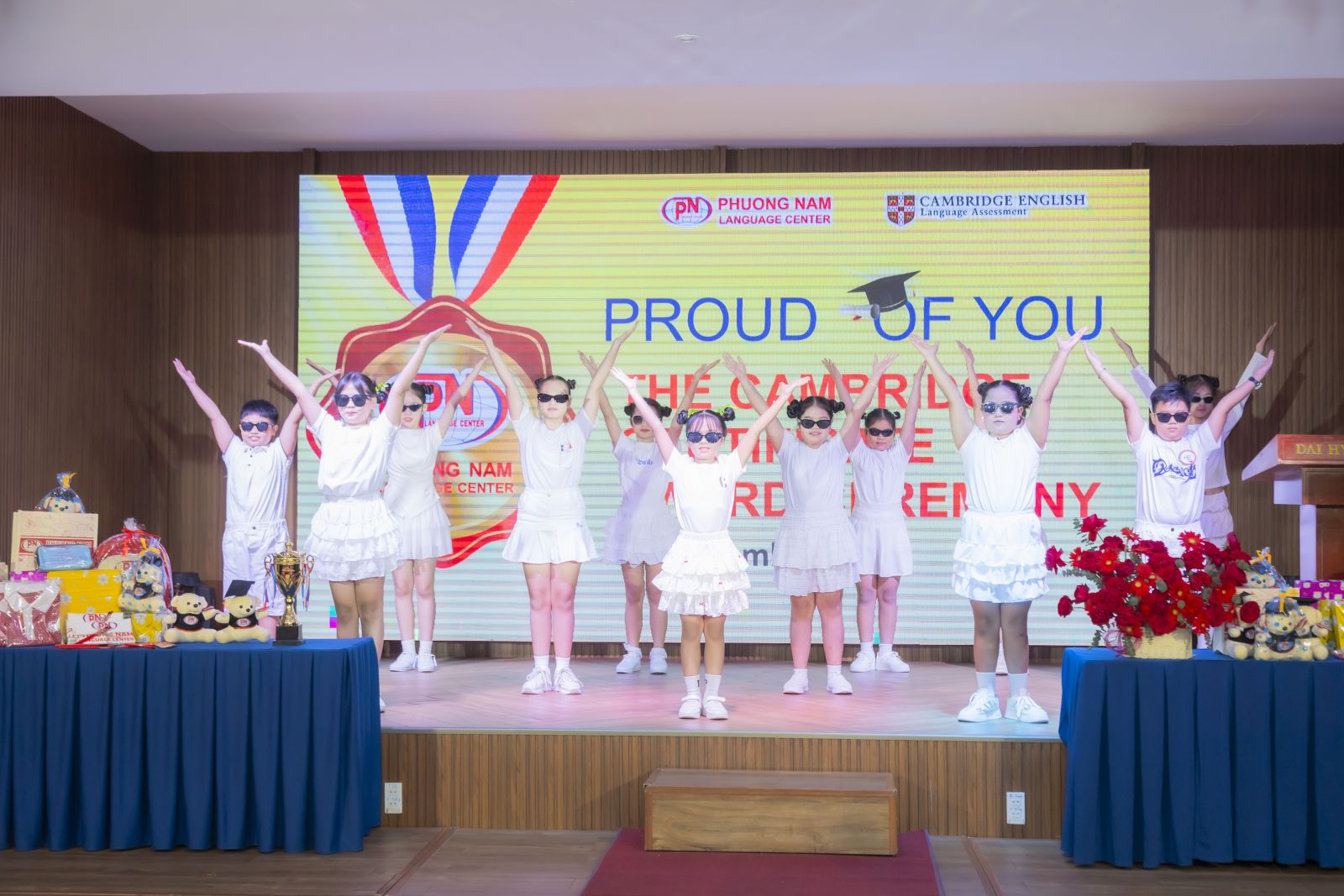 Phần quan trọng và được mong chờ nhất của buổi lễ chính là nghi thức trao chứng chỉ CAMBRIDGE. Từng em học viên lần lượt được xướng tên và vinh danh trên sân khấu, chính thức ghi nhận những nỗ lực, cố gắng không ngừng trong suốt quá trình học tập và ôn luyện. Những tấm chứng chỉ quốc tế trên tay không chỉ là thành quả xứng đáng mà còn là bước đệm quan trọng cho chặng đường học tập tiếp theo của các em.